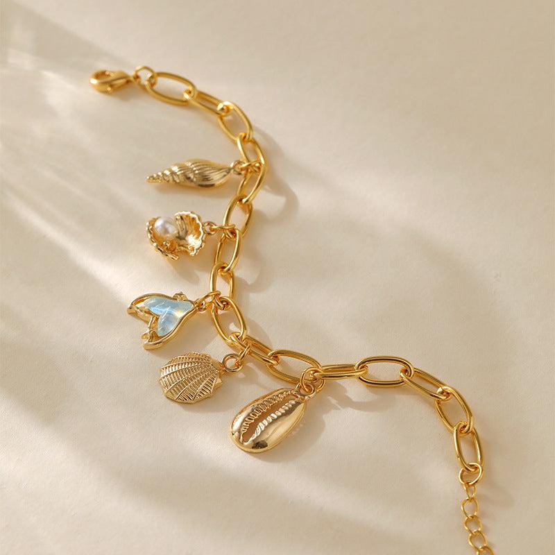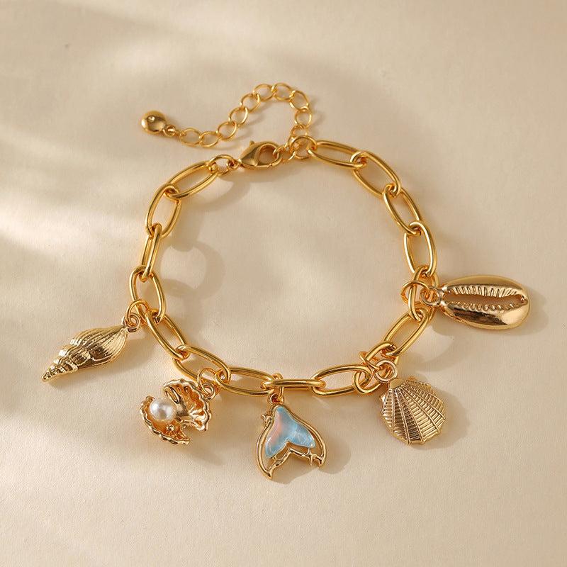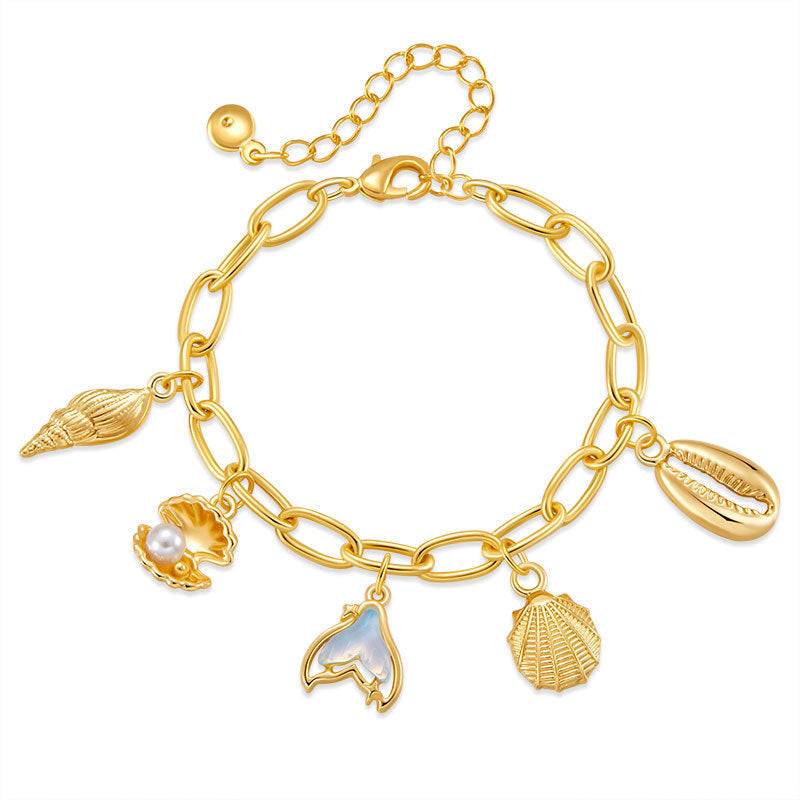 Copper Plating 18K Real Gold Color Retaining Bracelet Retro High Sense Handmade Pendant Bracelet